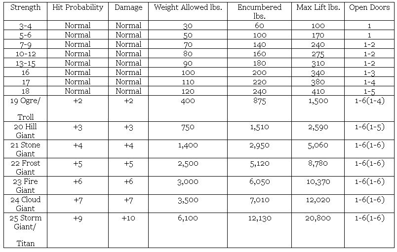 is my attempt to redo the first the Strength Table and Define Giant Strength